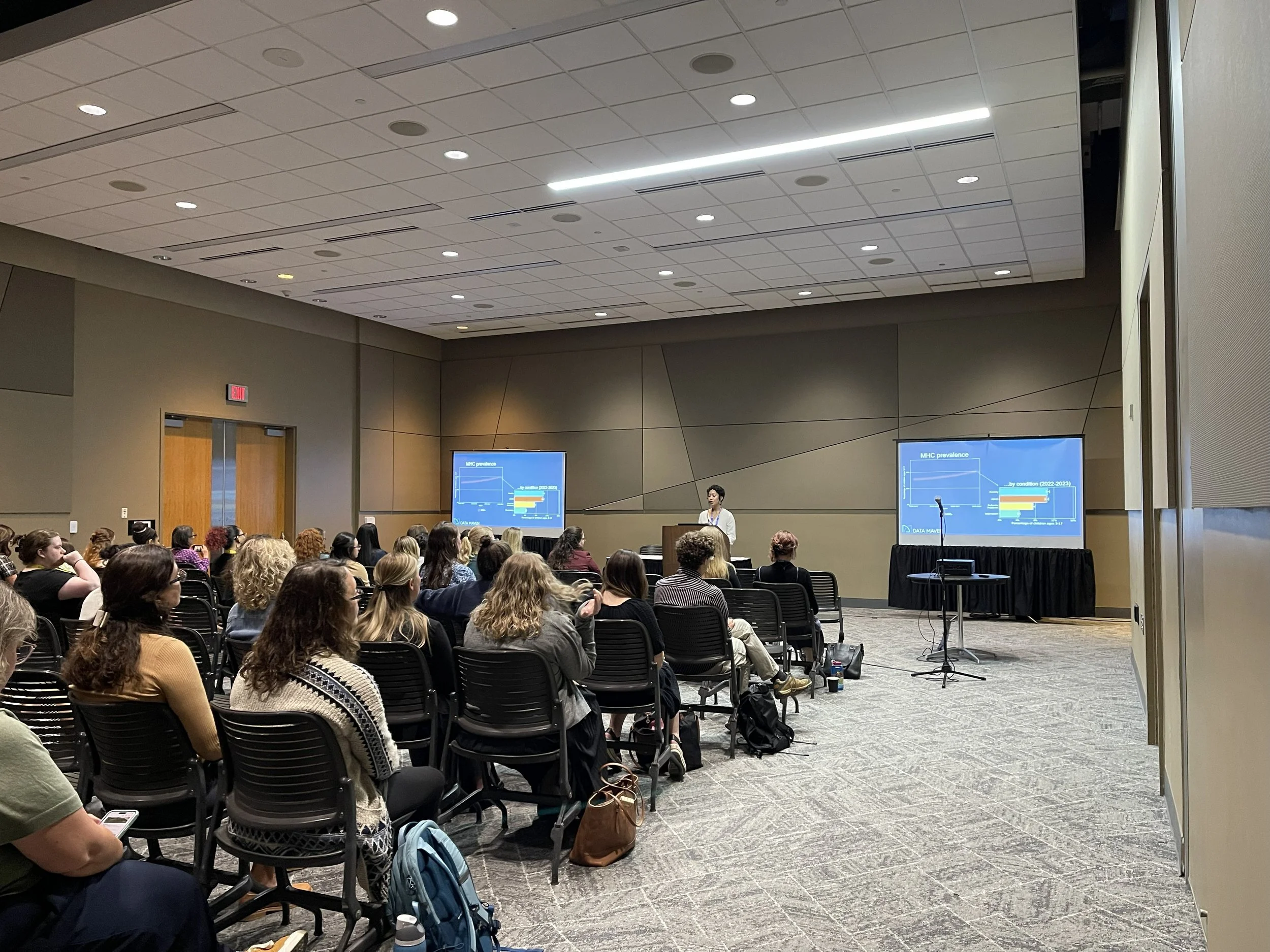 Data Maven’s Alexia Málaga presenting her research on mental health conditions among children at the 2025 CSTE annual conference in Grand Rapids, Michigan.